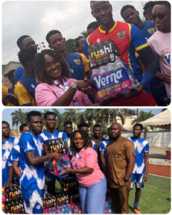 Food and beverage company Twellium Ghana Limited has shown support for Accra Hearts of Oak Sporting Club and Accra Great Olympics Football Club by providing packs of Verna Water and energy drinks.